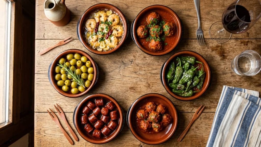 Recevoir 10 personnes, c’est savoir orchestrer le passage des saveurs sans finir épuisé. Pour que la soirée soit aussi fluide pour vous que pour vos invités, j’ai structuré ce menu en trois étapes clés. On commence par la fraîcheur immédiate des tapas froides, on enchaîne sur le caractère des fritures et des grillades saisies à vif, pour finir en beauté par le réconfort des plats mijotés qui restent chauds au centre de la table.