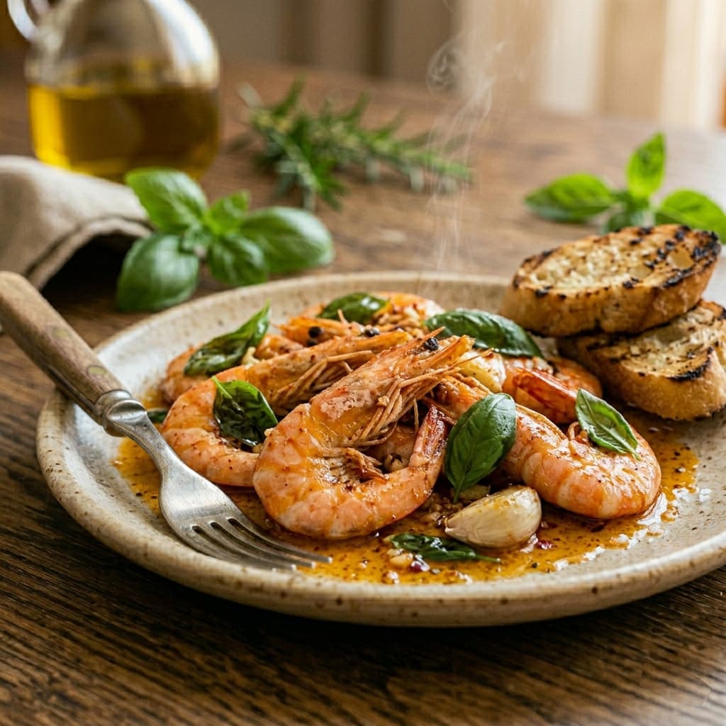 Le Secret de la Texture : Ne cuisez pas trop les gambas ! 2 minutes à feu vif suffisent. Elles doivent rester croquantes sous la dent. Arrosez-les généreusement de leur huile parfumée au dernier moment, c’est là que réside toute la gourmandise.