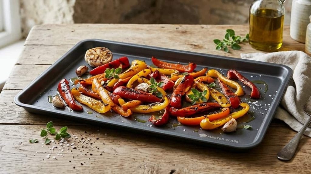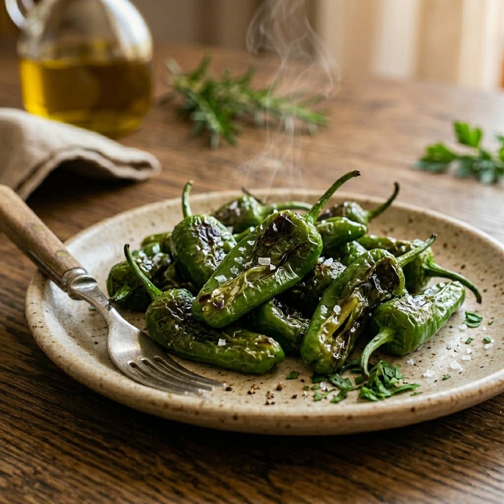 Difficiles à trouver en France, les pimientos de Padrón se déclinent ici avec des poivrons classiques, pour une version au four simple et pratique. On retrouve ce côté grillé et fondant, sans la contrainte de la cuisson à la poêle.